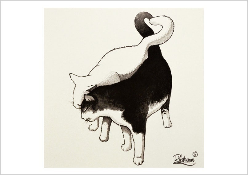 All is love by Raphaël – Monochrome Ethereal Cat Art Print