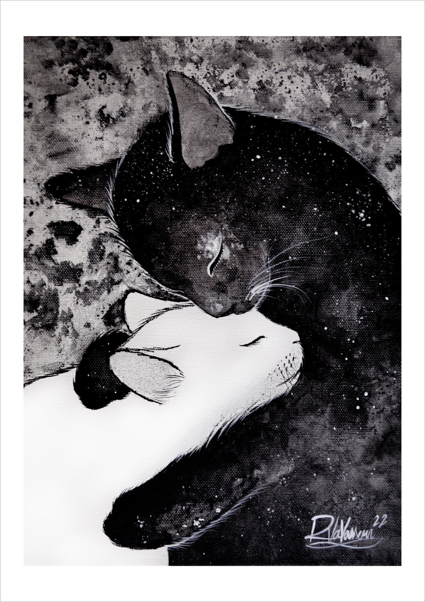 Twilight kiss by Raphaël – Monochrome Dreamy Cat Art Print