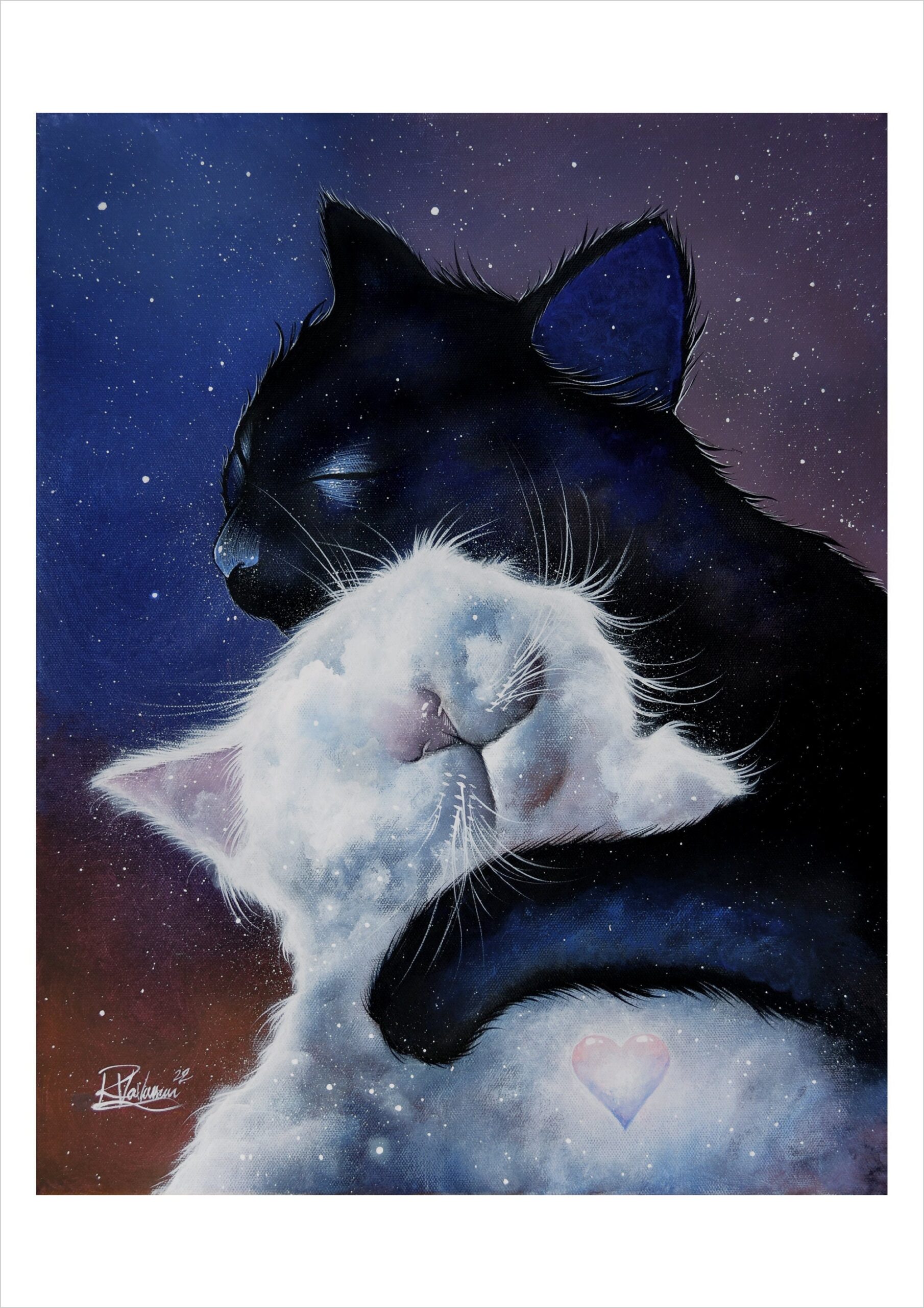 Raphaël Vavasseur’s “Blind love” is an ethereal cloud cat print. Dreamy feline grace floats among celestial clouds with luminous, poetic tenderness.