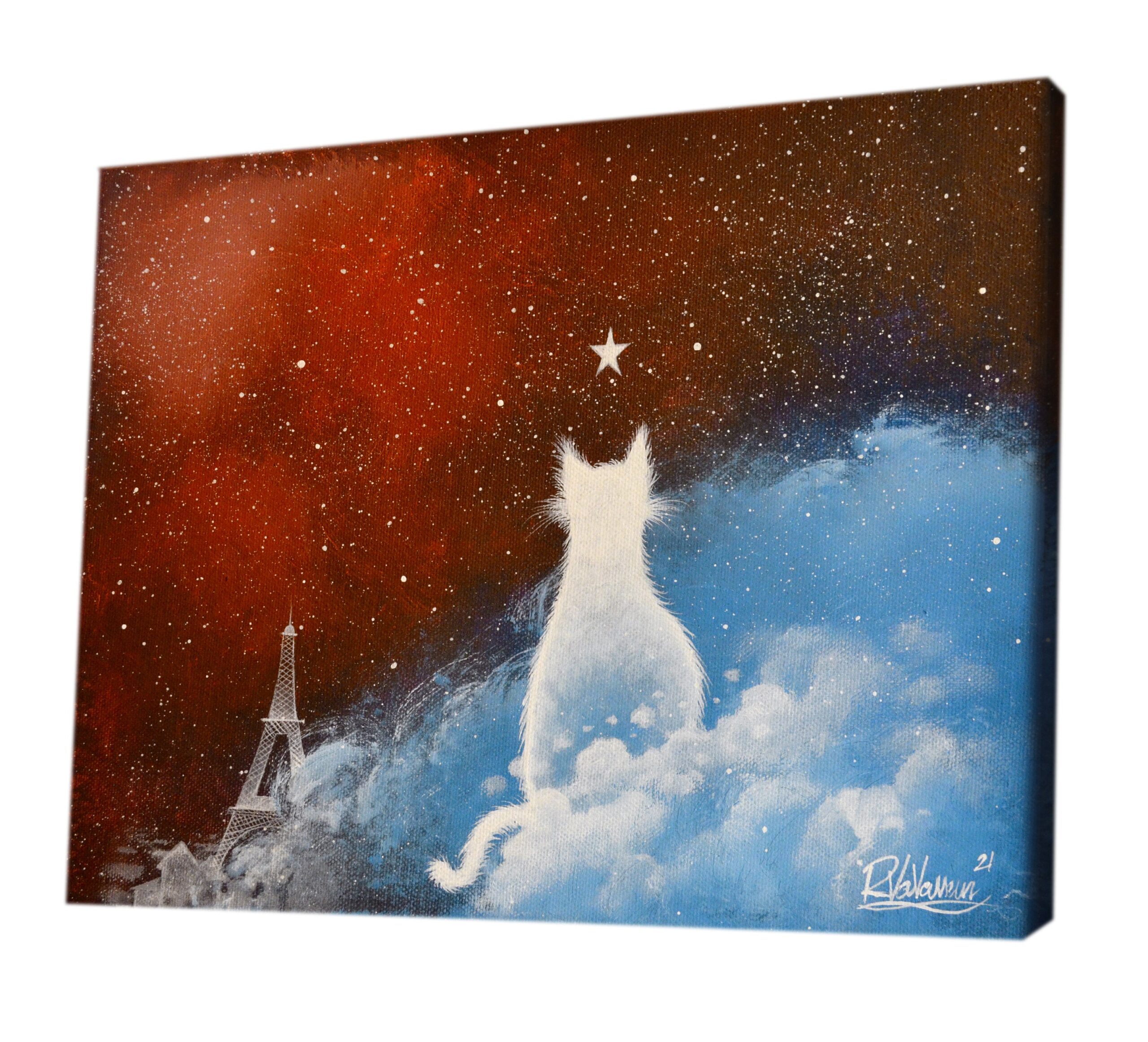 Cat light over Paris by Raphaël – Magical Cat Hand-Painted Art