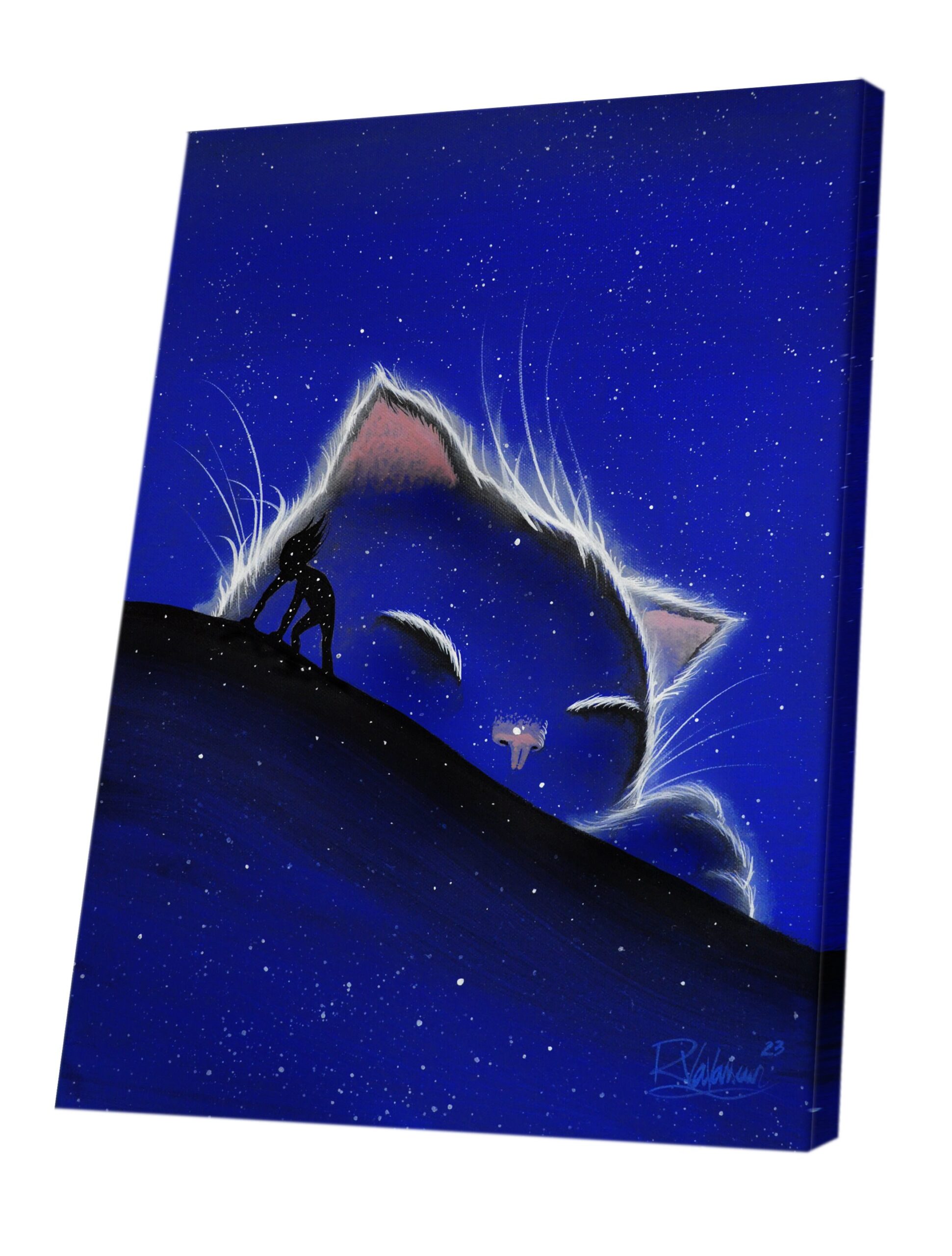 “Cat's sandman” is an original mystical cat painting by Raphaël Vavasseur, where tender feline souls meet cosmic wonder. A luminous, enchanted masterpiece.