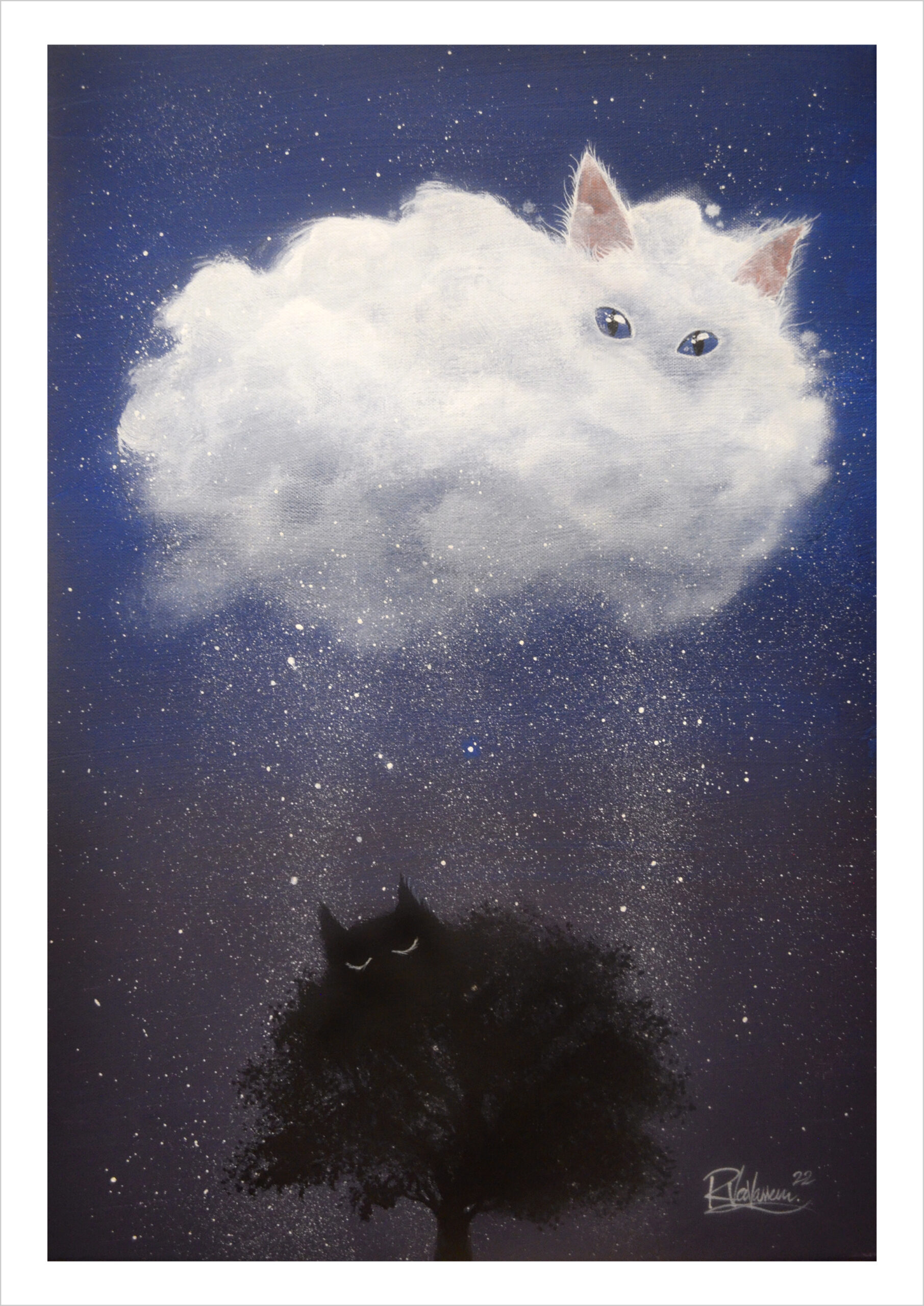 This dreamy feline print, “Cloud cat”, showcases Raphaël Vavasseur’s gift for celestial cloud cat art. A gentle, poetic masterpiece.
