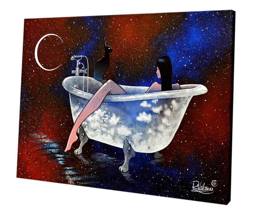 Cosmic bath by Raphaël – Hand-Painted Feline Painting