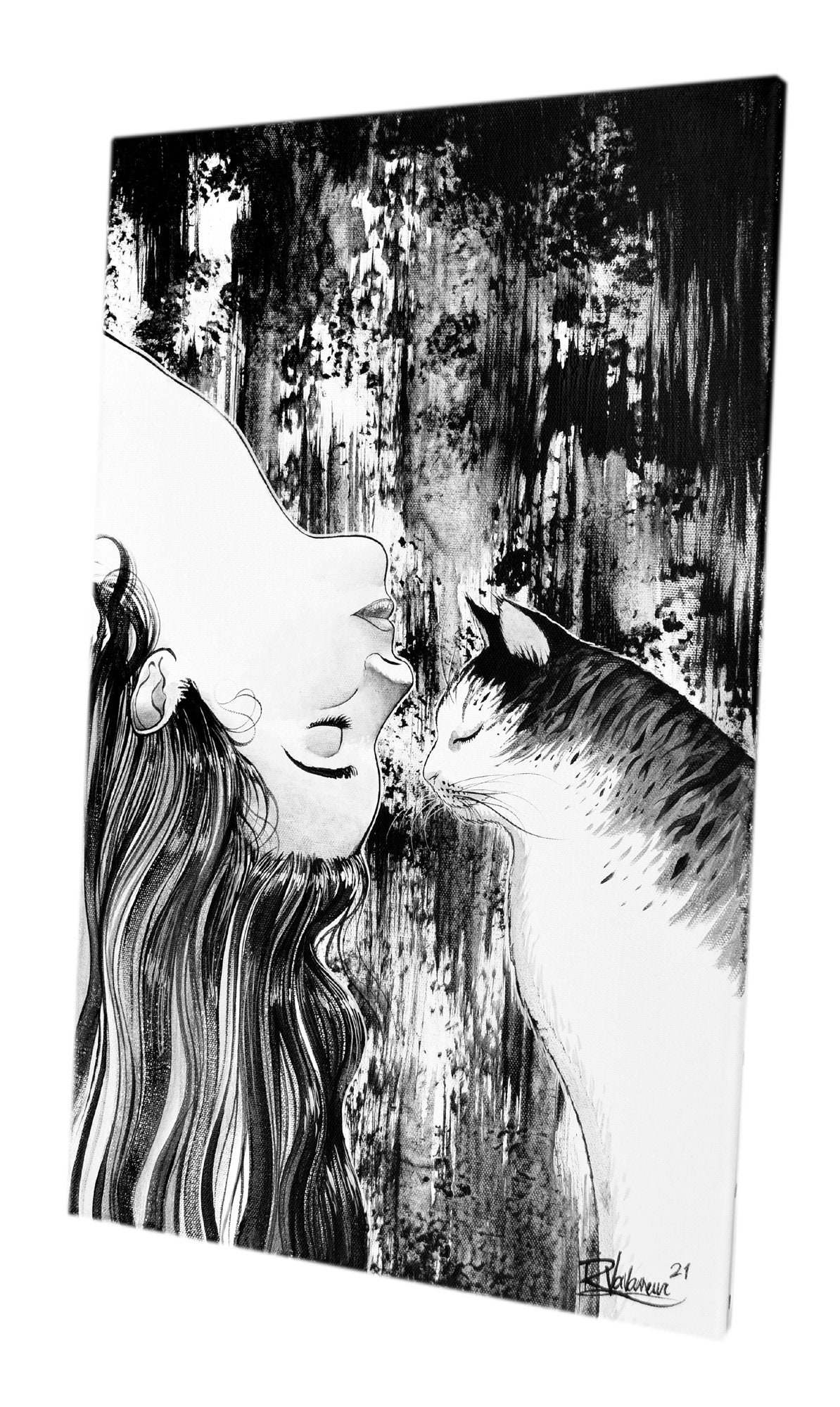 “Fall for you” is a one-of-a-kind original painting where cosmic cats come alive under Raphaël Vavasseur’s brush. A soulful feline artwork filled with dreamy, ethereal beauty.