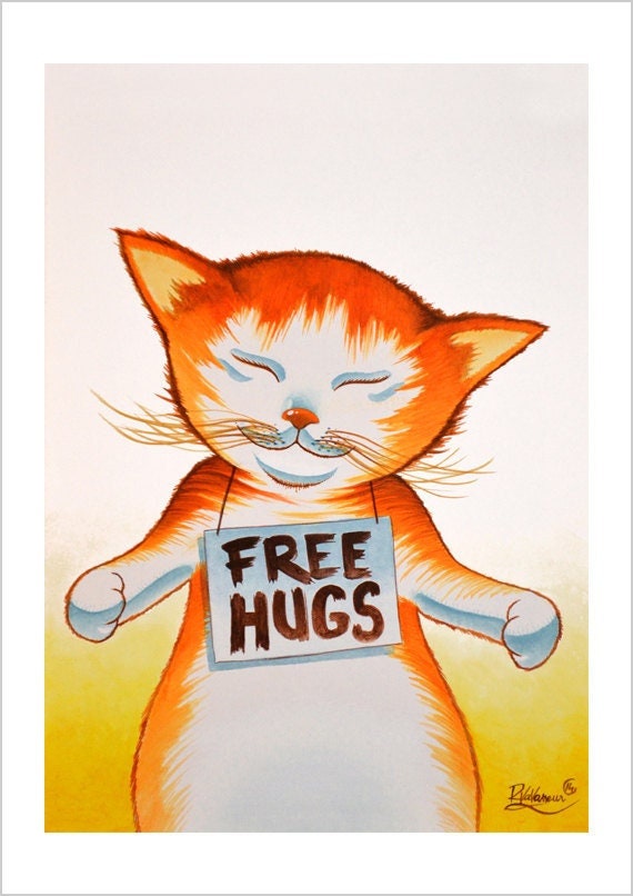 Free hugs cat by Raphaël – Gentle Whimsical Feline Print