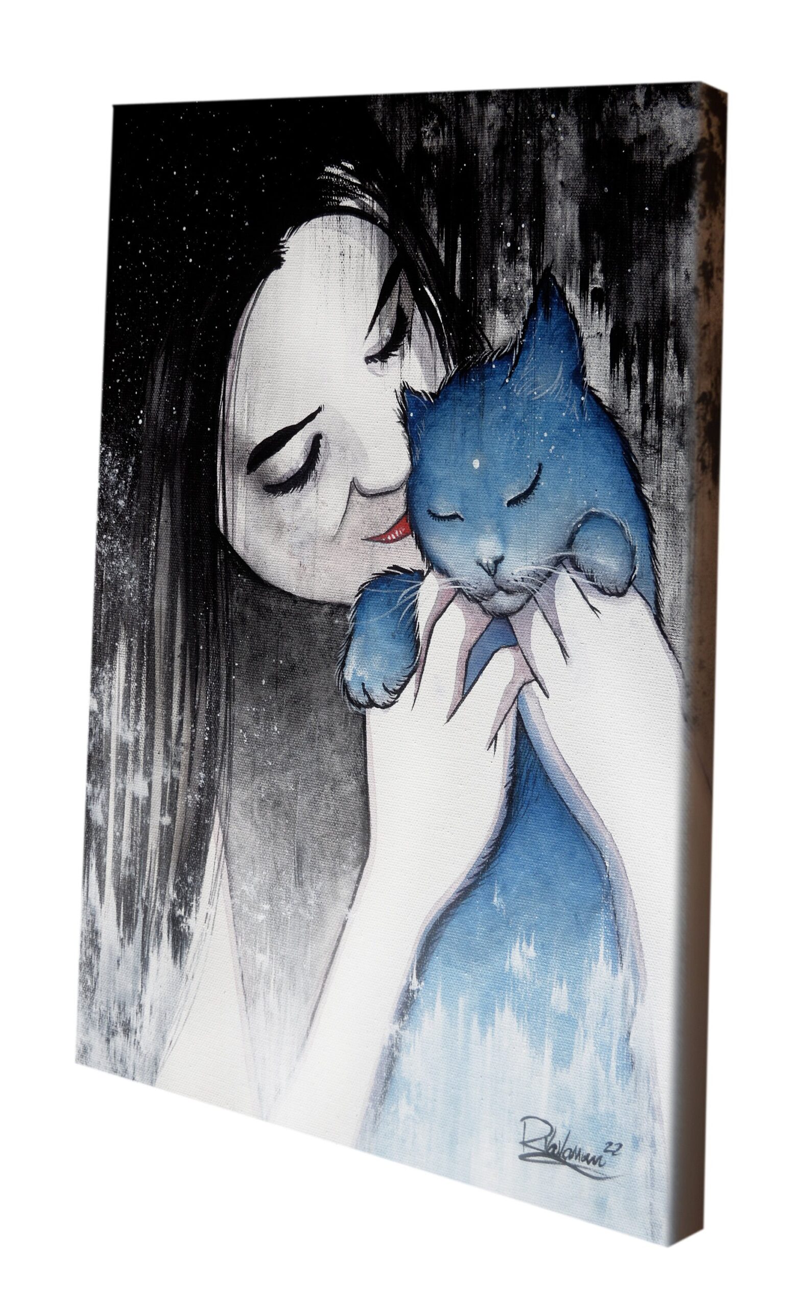 This hand-painted original, “Mother”, reveals Raphaël Vavasseur’s cosmic vision of feline beauty. A mystical cat painting pulsing with moonlit tenderness.