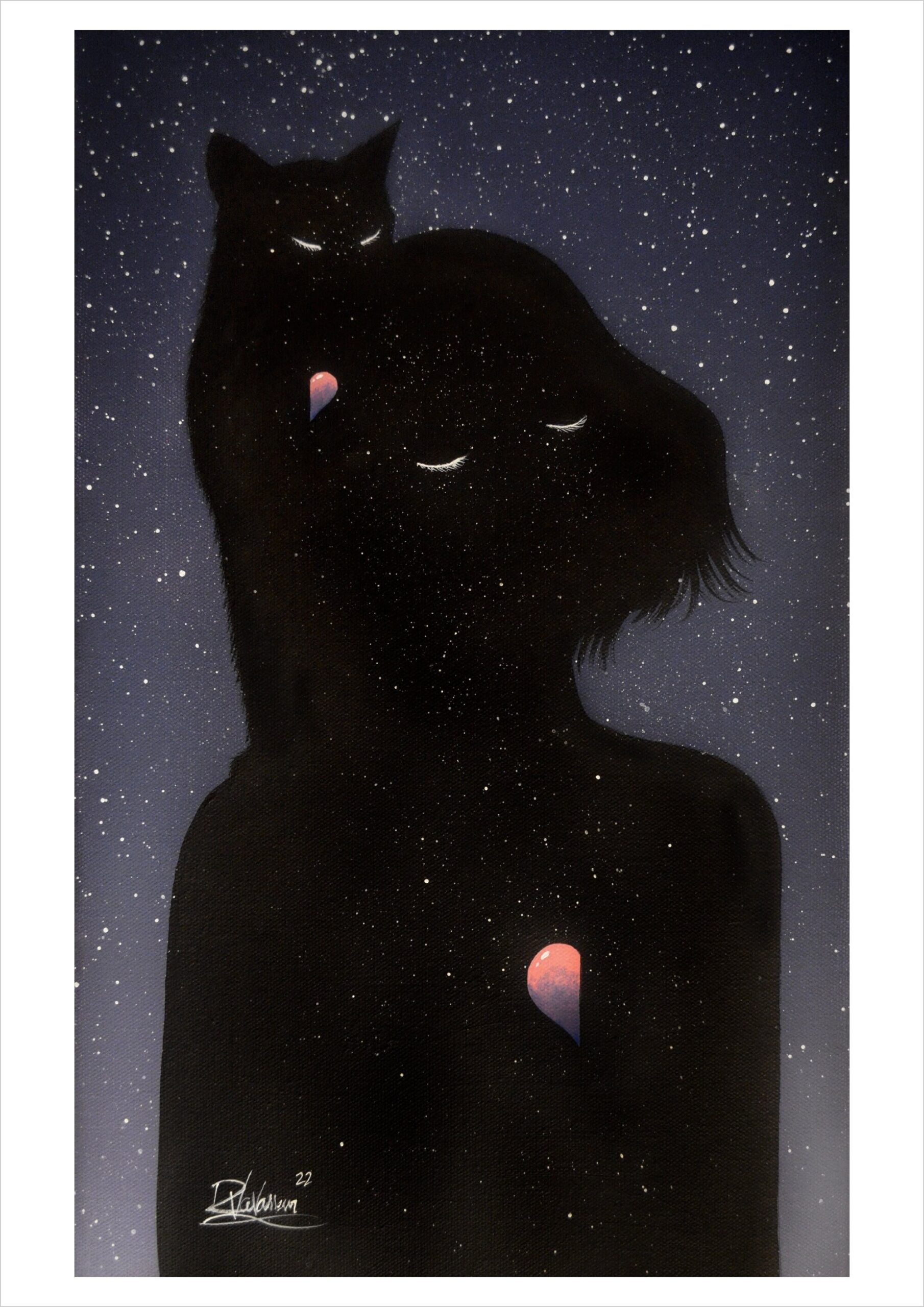 Share my darkness by Raphaël – Starlit Cloud Cat Art Print