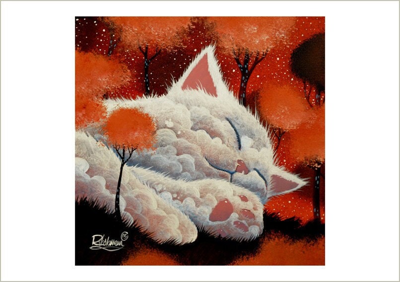 Sleeping cloud by Raphaël – Luminous Dreamy Cat Print