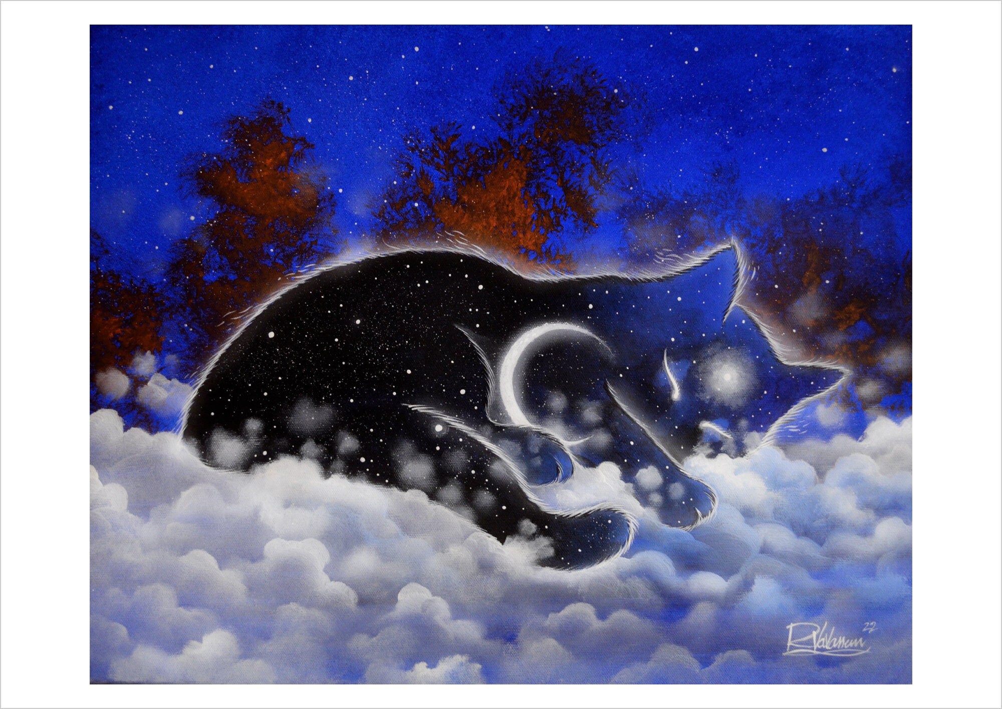 The guardian of the night by Raphaël – Ethereal Cloud Cat Art Print