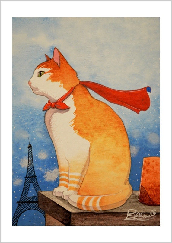 This Paris-inspired feline print, “The roofs of Paris cat”, captures Raphaël Vavasseur’s French vision. A Parisian cat artwork full of dreamy, romantic grace.